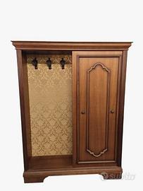 VENDO elegante mobile da ingresso multifunzione in stile classico. Struttura in legno con rifiniture curate. vano laterale con gancio appendiabiti su sfondo damascato e vano laterale con specchio e mensole. Ritiro a Pero (Milano)