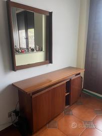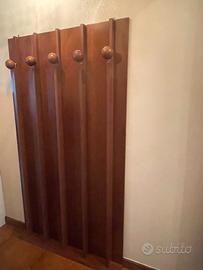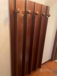 Mobile da ingresso con specchio, portaombrelli e appendiabiti in legno.