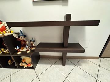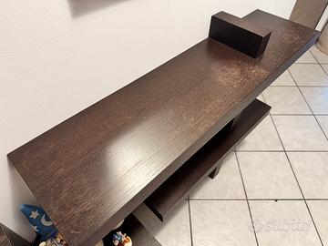 Mensola superiore 110cm, mensola inferiore 80cm, altezza nel punto più alto 94cm, profondità mensole 28cm.