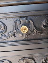 Pagina Facebook: Recor - RecycleAndDecor 🚛Il mobile si trova a Monterotondo, ritiro a carico dell'acquirente, verrà imballato per il trasporto dopo presa visione ✅️Mobile con due cassetti >>>>disponibile anche lo Specchio abbinato ovale 🎨🛋Color grigio scuro antracite 🔎 Piano di appoggio con finitura per alta usura 💡 Vero legno di qualità, pomelli originali lucidati Il rinnovo del mobile permette di avere arredi di qualità con un rapporto qualità prezzo più che vantaggioso