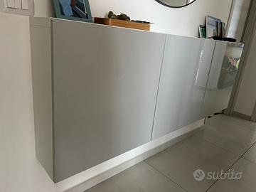 Cubi ikea 3 pezzi lungh 180cm altezza 64cm profondita 22 il mobile può stare sia sospeso che con i piedini per terra bianco e laccato beige