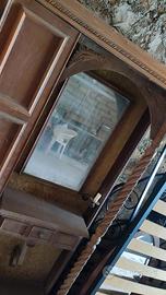 Mobile ingresso di antiquariato con specchio, porta oggetti, vano portaabiti con porta scorrevole e lampada a forma di candela.