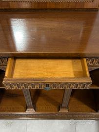 entrata in legno super resistente, con specchio abbinato, mini cassetto, stile antico, larghezza 110, profondità 35, altezza 92, misure specchio: 100 x 56