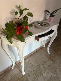 Vengo grazioso mobile ingresso. In legno(credo noce o ciliegio) in buone condizioni. è stato tinteggiato di bianco. Risale agli anni ‘60. Ottimo per creare un contrasto tra antiquariato e modernità. PREZZO TRATTABILE !!