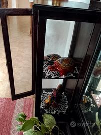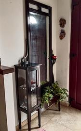 Vendo mobile antico da ingresso con specchio e vetrina in legno ebanizzato. Ben tenuto. Misure: Larghezza 104cm Profondità massima 26cm Altezza 190cm