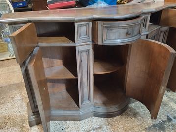 mobile ingresso in arte povera con un cassetto centrale tre ante due ante piccole anni 70 in legno massello misura altezza 93 larghezza 155 profondità 46 per info via plateja 12 14 tel 3891173440