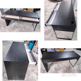 Scrivania nera in legno con 2 cassetti, usata pochissimo, 142x50 cm.