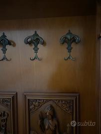 Vendo elegante mobile d’ingresso vintage in legno massello, completo di panca, cassettini e appendiabiti integrati.