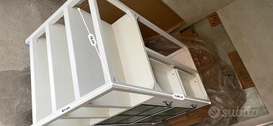 Legno colre bianco, misure da foto, non danneggiato, non ammaccato o sbeccato, manca il piano di lavoro superiore (una volta in marmo grigio).