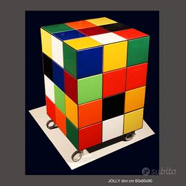è un mobile unico nel suo genere , ha 9 aperture a push pull di cui 6 cassetti con l'estrazione totale e 4 ante le dimensioni sono 60x60x90 su 4 ruote .