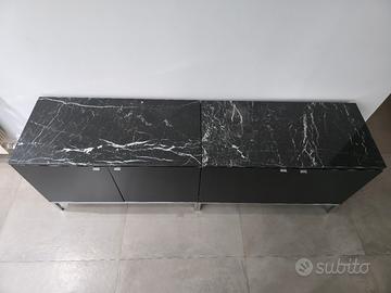 Credenza 4 Ante è stata progettata da Florence Knoll nel '54. Stuttura in rovere ebanizzato, top in marmo Marquina, Base cromata e interno con ripiani in legno.
