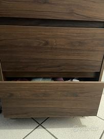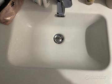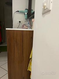 Color legno scuro, ha tre comodi cassetti e lavandino in ceramica bianca. Misure 60-40-90 in altezza (piedini regolabili).