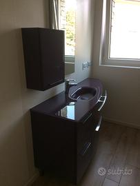 Mobile lavabo bagno con top in cristallo colore lilla comprensivo di n.2 pensili e n.1 specchio. Predisposto per il montaggio sospeso. Ottime condizioni. Ritiro in loco a carico dell'acquirente