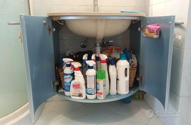 Mentre il lavandino ed il piano in graniglia sono in ottimo stato di conservazione, l'anta destra presenta delle fessure sullo strato superficiale della lamina verniciata.