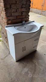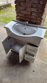 Vendesi mobile lavabo color bianco con lavabo, miscelatore e specchio con colonnina bianca. Stato di conservazione usato anche se presenta segni di usura evidenti, ma funzionale nel suo utilizzo.