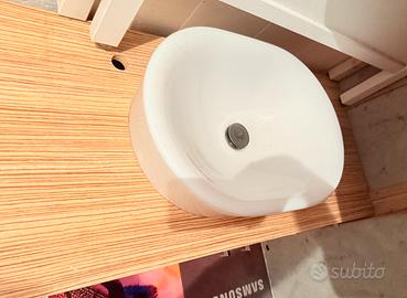 Mobile sospeso con lavabo da appoggio in ceramica. 6 cassetti con chiusra rallentata. Dippia anta sotto lavabo con ripiani intermedio. Ottime condizioni.