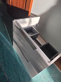 Base lavabo con 2 cassetti, finitura bianco laccato L60 P45 H55 cm. Chiusura soft close e maniglie in alluminio. Nuovo, mai utilizzato. Prezzo originale su Leroy Merlin 90 euro.