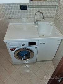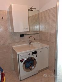 Mobile bagno con lavatoio completo di asse di legno, vano per lavatrice e specchio (cm 60x75)) come da foto. Dimensioni in cm qui di seguito: - base L=109 x P=60 x A=88 (larghezza x profondità x altezza) - pensile L=45 x P=70 x A=37 (larghezza x profondità x altezza) Finitura melaminico bianco, lavatrice esclusa, eventuale mensolina extra non menzionata in omaggio. Ideale per bagni ad uso lavanderia oppure per taverne, completo di tutto, semplice ma funzionale. Ottimo affare, si valutano offerte.