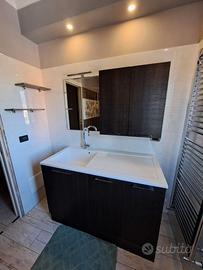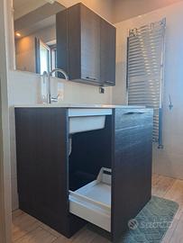 Mobile lavanderia e bagno compreso di specchio e lavandino con fontana.