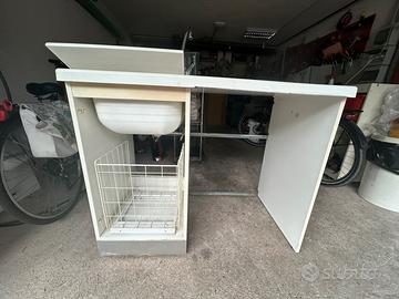 Mobile lavanderia Lavabo e coprilavatrice con cesto biancheria Completo di rubinetto