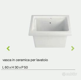 Vendesi mobile lavanderia della ditta Savini nuovo a causa di errore di misura, lavabo ancora nel proprio scatolone. Il mobile color tortora opaco con top effetto pietra è composto da due ante push and pull e un ripiano interno.