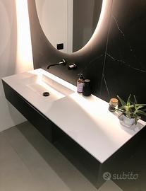 Mobile bagno sospeso laccato opaco berlino con piano lavandino incluso in technoteck bianco opaco, compreso piletta di scarico nera push. Misure e dettagli si veda ordine prodotto in foto. Il prodotto é nuovo, si vende per cambio stile da parte del cliente durante costruzione di villa.