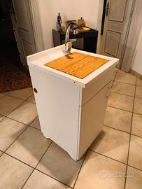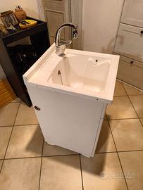Mobile lavatoio / lava panni da interno in legno con vasca in pvc molto profonda. Completo di miscelatore, raccordi , scarico e attacco per la lavatrice Tenuto sempre all'interno. Praticamente nuovo Larghezza 44 Altezza 84 Profondità 49