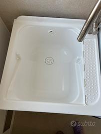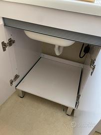 Mobile lavatoio in alluminio bianco con vasca in resina bianca con sifone e tavoletta SPM.