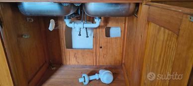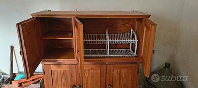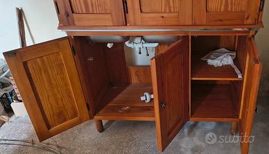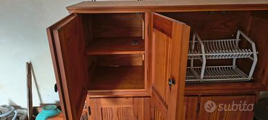 Vendo mobile lavello a due bocche in acciaio inox completo di pensile scolapiatti in legno massello, rubinetto e sifone.
