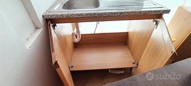mobile lavabo in ottimo stato, color noce, ante a battente, con lavello e miscelatore incluso .