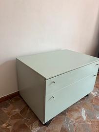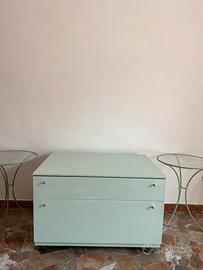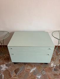 Mobile legno cassettone verde acqua + 2 tavolini in metallo e vetro del set
