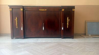 Vendo mobile in legno massello con parte superiore in marmo. Di seguito i dettagli riguardanti le misure: profondità colonne laterali cm 49, profondità centrale cm 44,5, lunghezza cm 204, altezza cm105
