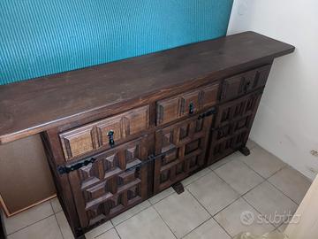 Vendo splendida credenza/madia in stile rustico spagnolo (Castigliano), un pezzo d'arredamento di grande carattere e solidità, realizzato interamente in legno massiccio degli anni '50.