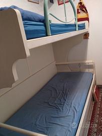 Mobile composto da 3 letti. 2 a castello con scaletta + 1 letto a scomparsa . Materasso AFAJAL (IKEA) per il letto superiore. Scaletta e Barriera protettiva per il letto superiore.
