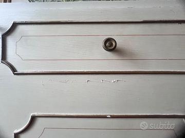 Vendo mobile letto singolo a scomparsa in legno con rifiniture dorate e dipinti floreali stile veneziano, il design simula una simmetria di cassetti conferendogli un aspetto raffinato ideale anche per un soggiorno.