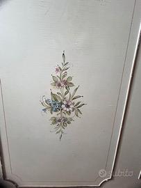 Mobile letto singolo a scomparsa in legno con rifiniture dorate e dipinti floreali stile veneziano, il design simula una simmetria di cassetti conferendogli un aspetto raffinato ideale anche per un soggiorno. Struttura compatta: misure 200 x 40, sistema con apertura a chiave. Dotato di rete (non doghe) e materasso pronti all'uso. Una volta aperto offre uno spazio di 30 cm utile per appoggiare una lampada, libri o altri oggetti. Stile vintage anni 70 Ritiro diretto presso il mio domicilio. Prezzo da concordare