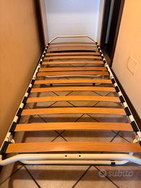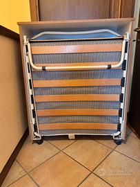 Rete a doghe, molto comodo. Appoggiato al muro e chiuso appare come un comò, semplice ma elegante allo stesso tempo , dunque fa anche arredo.