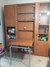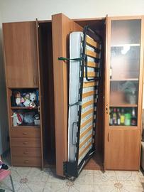 Vendo mobile con letto singolo a scomparsa, con scrivania, ripiani a giorno e chiusi e cassettiera. Soluzione salvaspazio, adatta anche a ambienti più piccoli. Compreso nel prezzo anche il materasso usato pochissime volte.