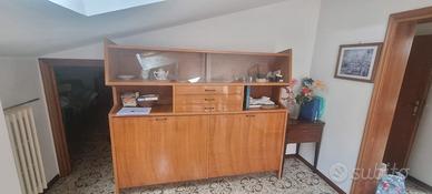 Mobile letto originale anni 60, con cassetti e vetrinetta con vetri decorati e contenitore letto Misure cm 200 per 172 altezza e 40 di profondità con letto chiuso 120 con letto aperto.