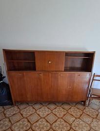 Vendo mobile letto trasformabile vintage anni ’60, soluzione salvaspazio molto pratica. Da chiuso si presenta come una credenza/libreria, mentre aprendolo diventa un letto singolo con rete in metallo integrata. Il meccanismo funziona perfettamente: si apre senza sforzo e senza rumore ed è richiudibile anche con una sola mano. Da aperto l’ingombro totale è di circa 120 cm. Sono presenti anche vani contenitore e mensole nella parte superiore. Misure rete letto: 75 x 184 cm (letto singolo) Mobile usato con normali segni del tempo, ma perfettamente funzionante e molto solido. Ritiro a carico dell’acquirente a Pordenone. Prezzo trattabile. Disponibile da subito.