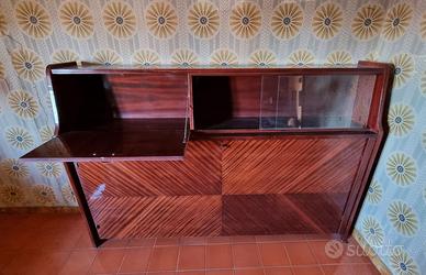 Mobile letto in legno marrone, composto da una vetrina (ante scorrevoli) porta oggetti + un’ anta porta oggetti, vano apribile con rete singola inclusa all’interno. Misure: lunghezza 193cm, profondità 38cm, h130cm