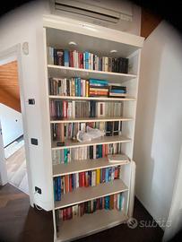 Vendo i 3 moduli come da foto (libreria a scaffali aperti, mobile a 2 ante a vetri e ponte superiore centrale), gestibili sia come singoli moduli che tutti insieme, nella sequenza preferita. In foto montate in due modalità diverse e come singola libreria, a titolo di esempio.