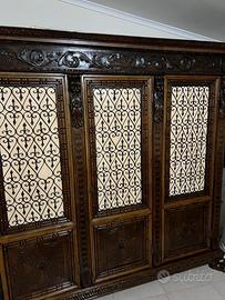 Mobile/Libreria da studio ,antico , in legno decorato in rilievo in ferro battuto sulle ante , 3 ante con scompartimenti interni