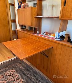 Bel mobile libreria, tutta in legno di teak. Contiene un letto x ospiti,con rete 185 x85 e un tavolino a ribalta cm 70 x 58. Misura cm L 195, h 174 e Prof 40 a terra e 30 x gli scaffali chiusi. Trasporto a cura dell’acquirente. Trento città