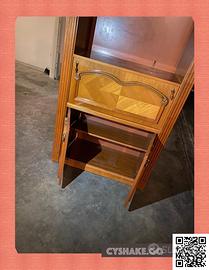 Libreria di design classico in legno, con cornice superiore lavorata, ribalta / modulo scrittoio, sportelli / ante e vari ripiani, ottimo per sala o ufficio