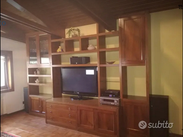 Mobile libreria stile "arte povera" larghezza circa metri 3,40 altezza circa metri 2,30 (per le misure vedere foto allegata). Con notevole spessore da 5 centimetri totalmente in legno massiccio in tinta noce stile bassanese. Possibile visionarla già montata senza impegno da mobiliere a pochi metri da casa. Ovviamente essendo usata presenta qualche segni di usura. Se interessati il prezzo è trattabile sul posto