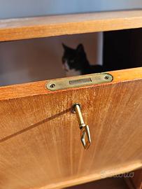 Vendo mobile in stile nordico scandinavo, in legno, pezzo originale, in ottimo stato, leggermente usurato attorno alla chiave (come da foto), SOLO A CHI SE LO VIENE A PRENDERE (Mogliano Veneto, ottavo piano, possiamo metterci d'accordo per portarlo giù insieme a qualcuno...).