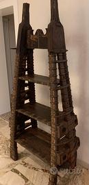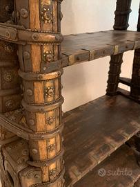 Vendo mobile libreria indiana originale in legno massiccio ornata con riporti in rame.