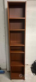 Vendo libreria stretta color legno, ideale per spazi piccoli, corridoi, studio o cameretta.
