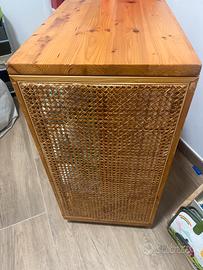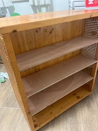 Mobile cameretta o soggiorno con rotelle 3 tipiani per lato Alcuni rivestiti e altri legno grezzo removibili Misure: Largo 68,5 cm Alto 80cm Profondo 39,5 cm